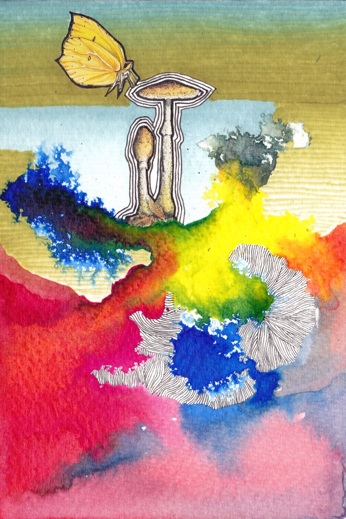 Butterflies – collage, watercolour and ink